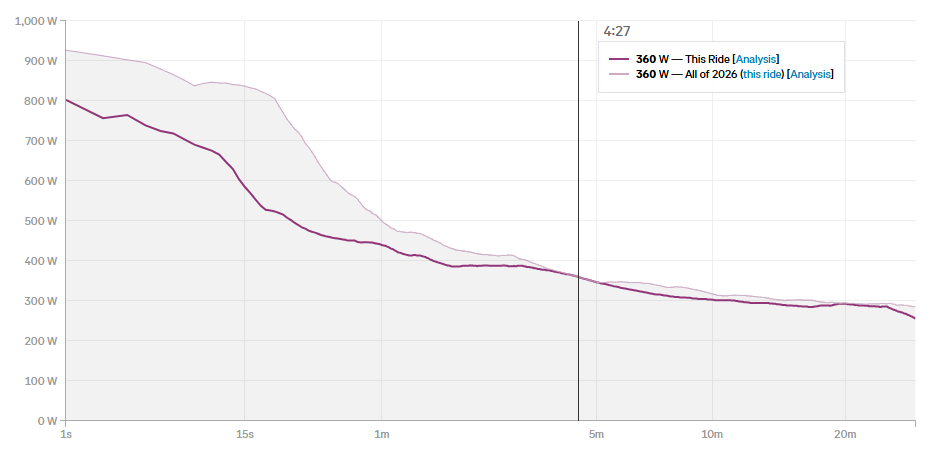 In terms of my actual performance, this was a decently challenging effort, giving me a new power curve PR for 2026 in the VO2max time window: